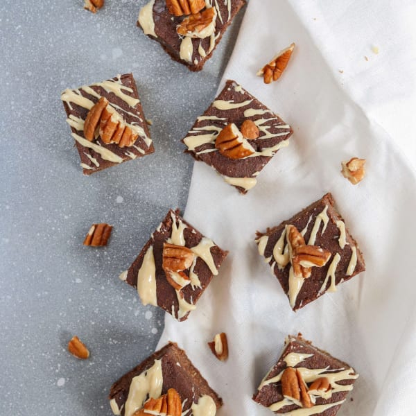 - Abwechselnd Erdnussmuss und Nüsse in den Datteln verteilen