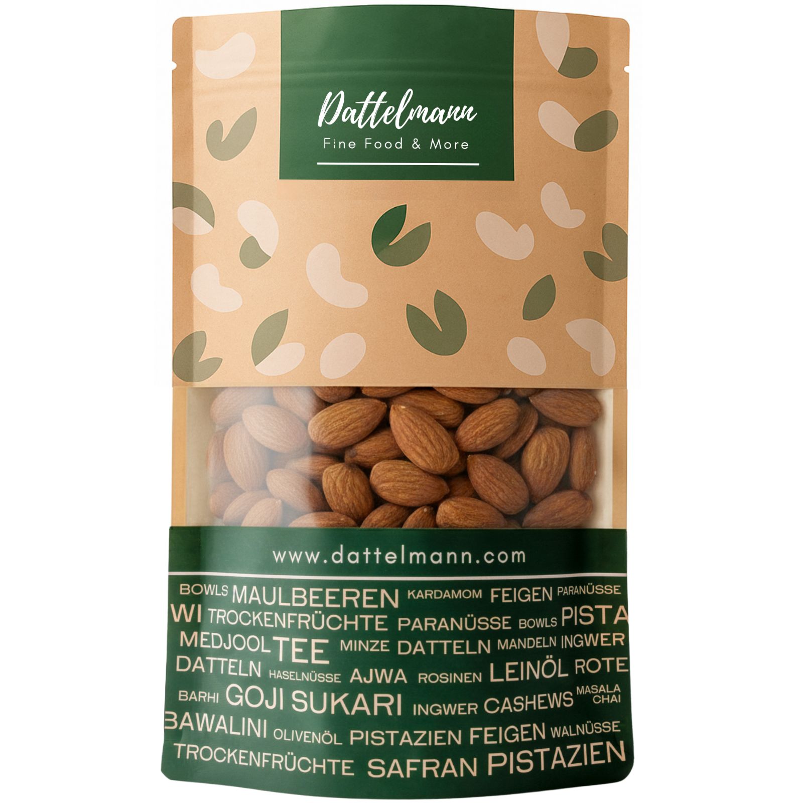 🌿 100% Natürliche Kalifornische Mandeln (Carmel Supreme, unpasteurisiert)|💪 Reich an Eiweiß (21,2 g/100 g) & Ballaststoffen (12,5 g/100 g)|❤️ Reich an Vitamin E, Magnesium & gesunden Fetten|🌱 Nachhaltig angebaut in Kalifornien – GMO-frei & unpasteurisiert|🥗 Ideal als Snack, zum Backen, für Smoothies & Bowls|✅ Premiumqualität, frisch verpackt von Dattelmann in Deutschland